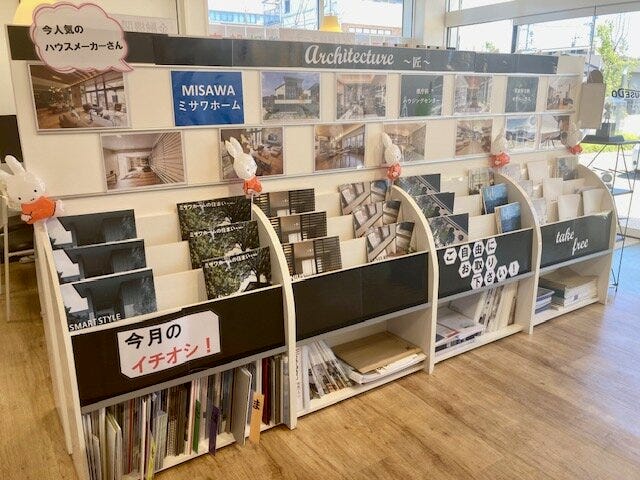 写真は店内中央のハウスメーカーコーナー。