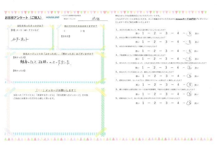 希望の条件に合う物件に出会えてよかったです。今後もよろしくお願いします。