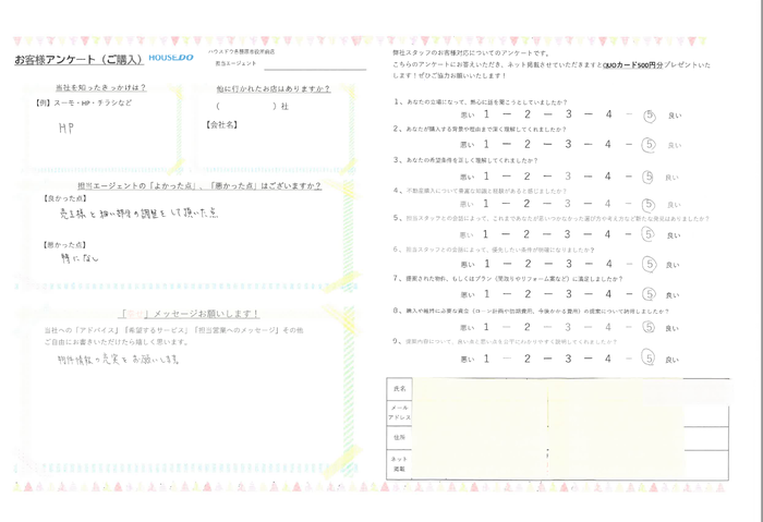 この度は物件の購入頂き、誠にありがとうございます。 お客様とお会い出来、ご縁頂けた事 大変うれしく思います。 今後ともよろしくお願いいたします。