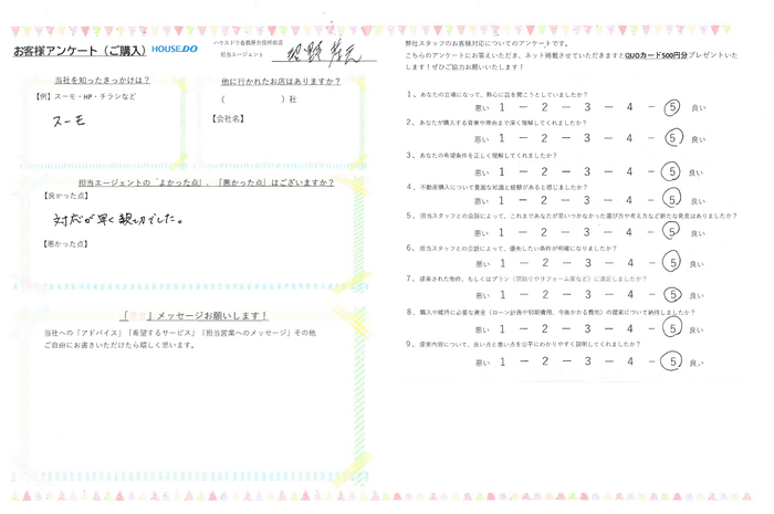 ご主人様はお仕事の都合で内覧できませんでしたが、 決めて頂きました!ありがとうございます!