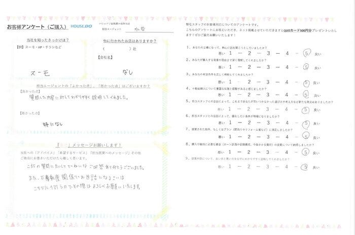 新居のお手伝いが出来て嬉しく感じます。 また、今後も引き続き不動産関係でサポートして参りますので宜しくお願いいたします